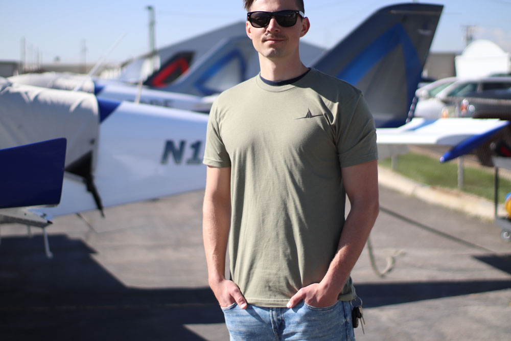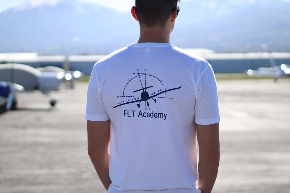 This t-shirt has the FLT Wings on the front left chest, and “This is how we roll” on the back. Available in olive, white, and black.